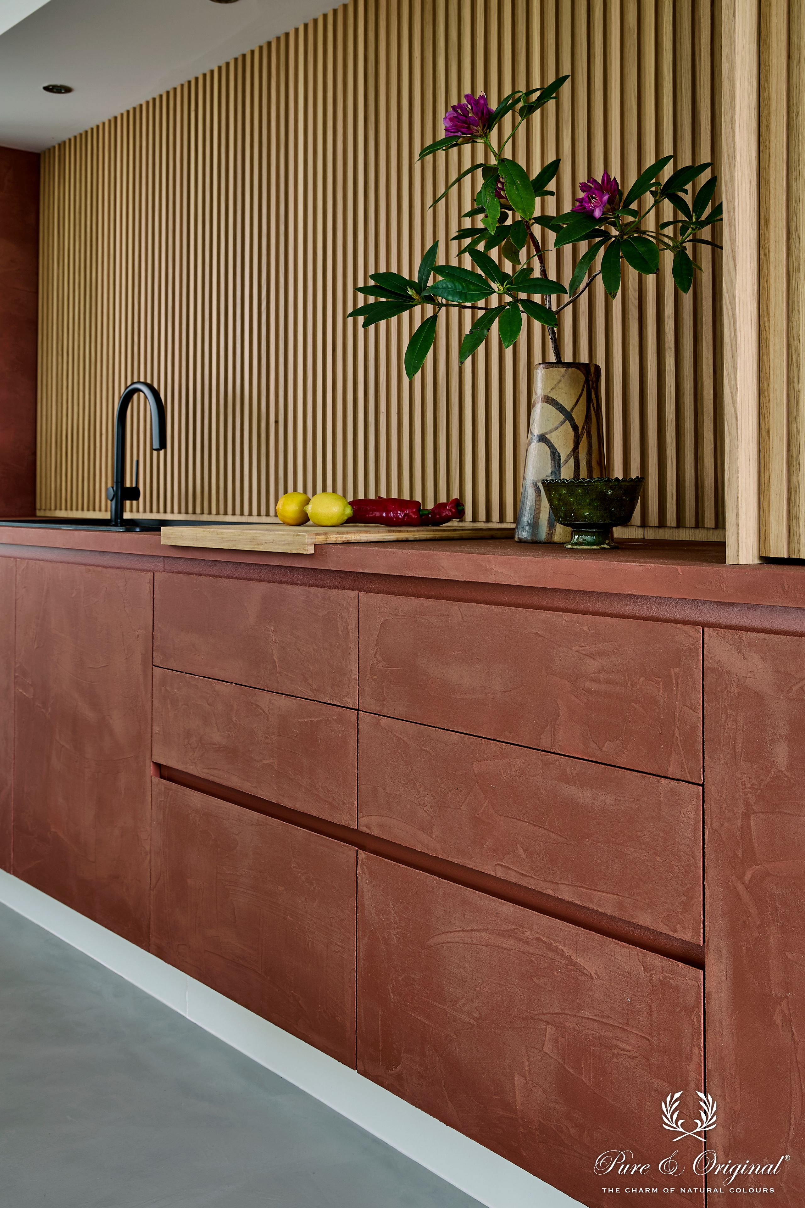Discover our eco-friendly, micro-stone grainy, textured finish. It offers a luxuriously cement-like architectural (two-coat) textured finish for multiple purposes, such as wet cells, walls, ceilings, kitchen and bathroom countertops, and even, if professionally applied to a suitable substrate, for floors. It’s comparable to microcement finishes but without the cement, which makes it a sustainable alternative. We recommend protection with 1K or 2K Varnish of substrates with high endurance.